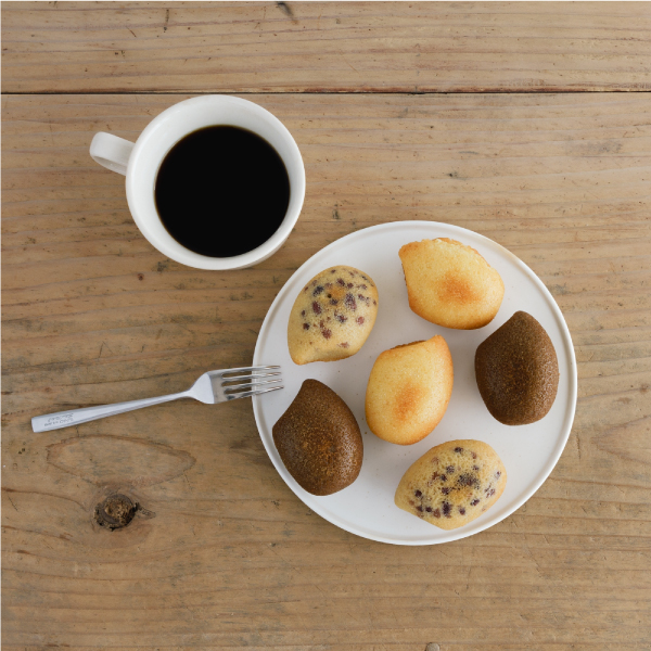 マドレーヌのようなしっとりとした食感と、やさしい甘みが特徴です。